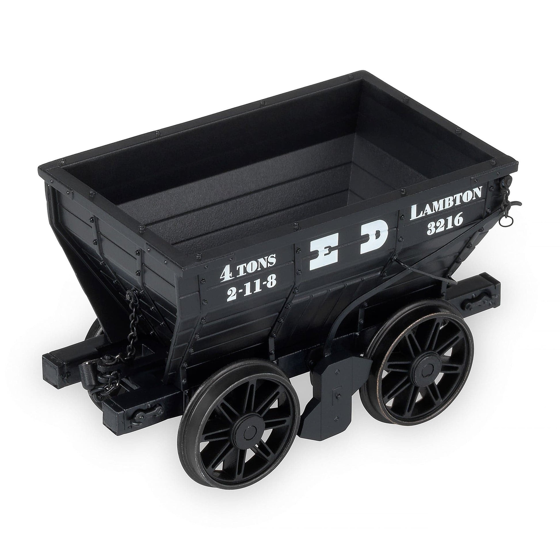 - Wagons connected via an all new link fine chain with Neodymium magnetic heads, connected at the wagon via prototypical cotter pin coupling.