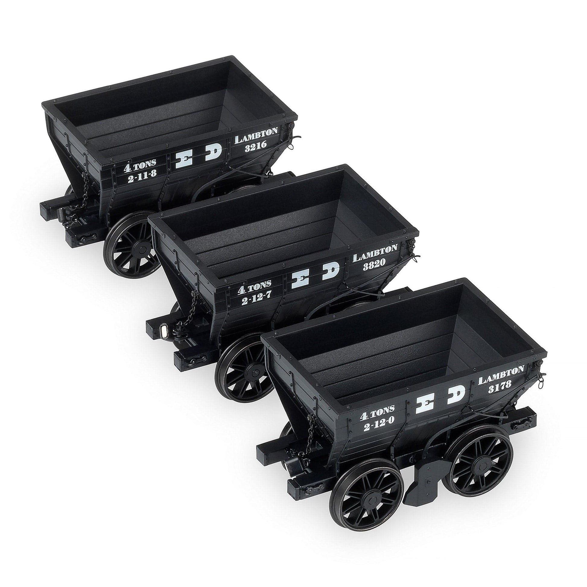 Pack F: Lambton Collieries (Earl of Durham’s Collieries) - Three ex-NER P1 style Chaldrons in pre-1896 livery.