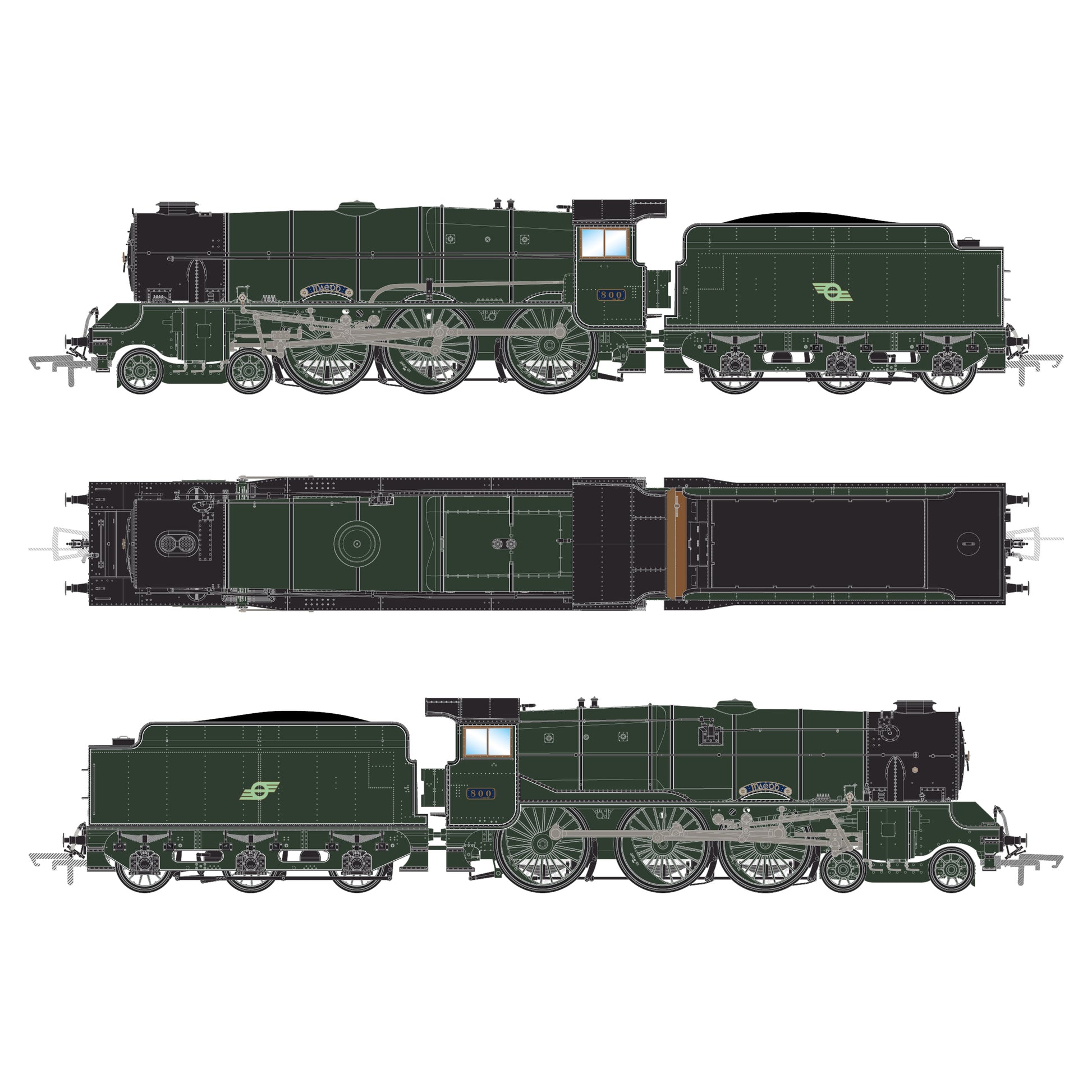 The three 4-6-0 Class 800 locomotives; 800 Maeḋḃ, 801 Maċa and 802 Táilte, were designed by the Great Southern Railway’s Chief Mechanical Engineer Edgar Bredin and his chief draughtsman, H.C Beaumont and represented a quantum leap forward in Irish locomotive design, being the first three-cylinder express locomotives built in the country. By the mid-1930s, the top link Dublin – Cork services had reached a critical loading point, where the existing fleet of 4-6-0 locomotives were stretched to their capabilities and beyond, particularly on the steep climb out of Cork. A larger, faster class of locomotive was needed. The three "Celtic Queens" gained iconic status among Irish enthusiasts and were the largest 4-6-0 locomotives to operate in the British Isles.