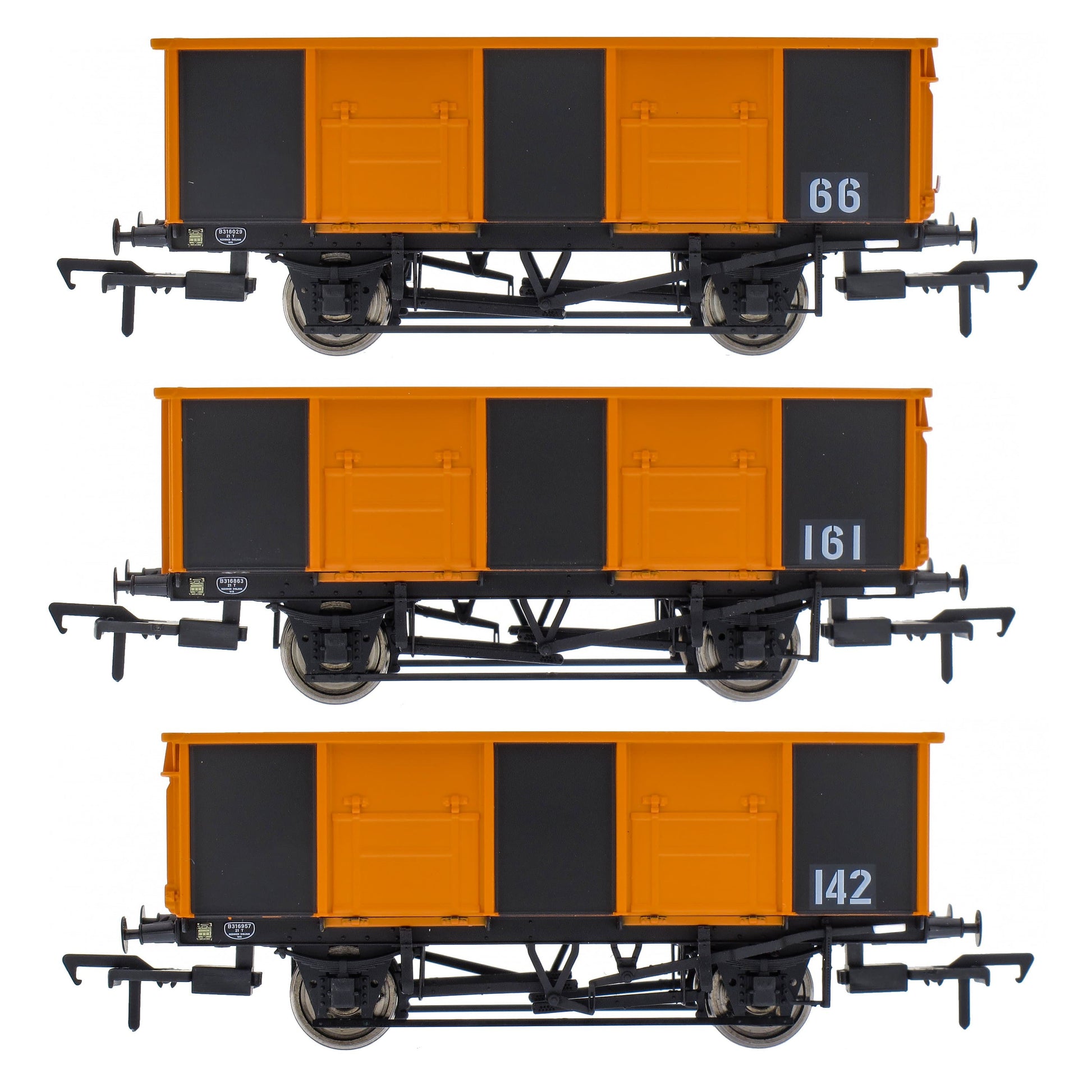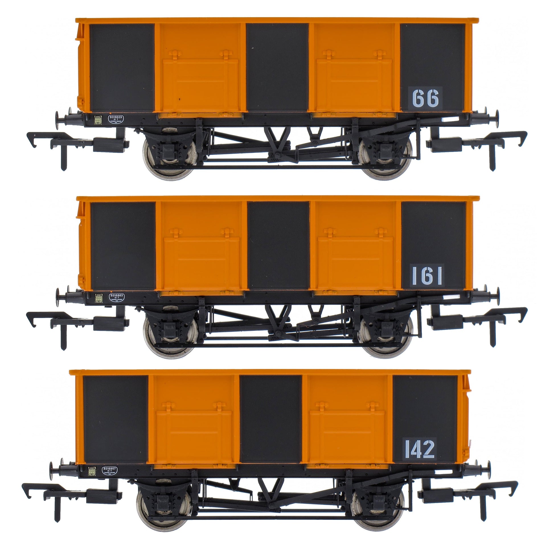 Our dark grey and orange livery is inspired by the internal user wagons at Grimethorpe Colliery in North Yorkshire, however due to their plain livery they could be adapted for use on your own industrial layout. The pack will contain three individually numbered wagons.