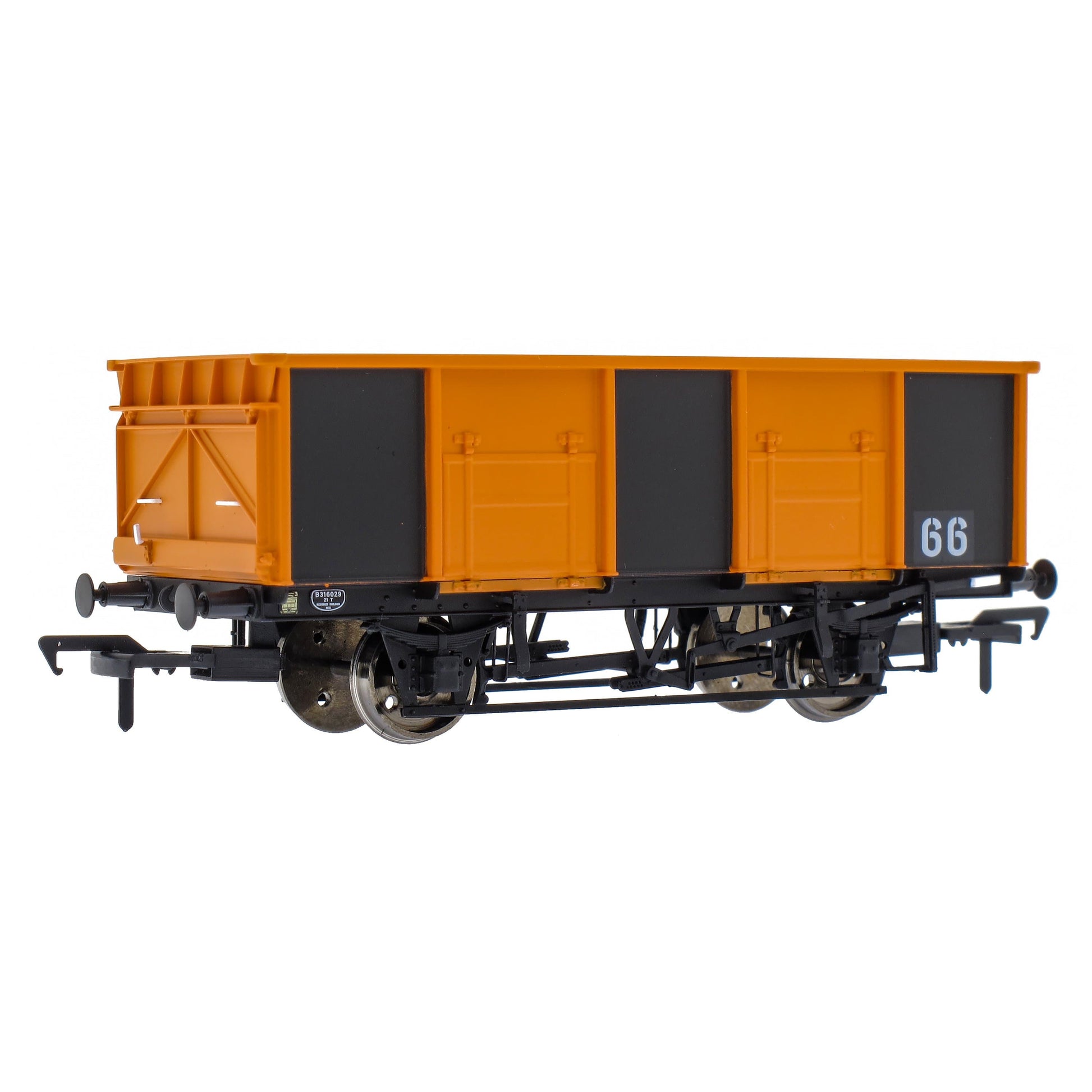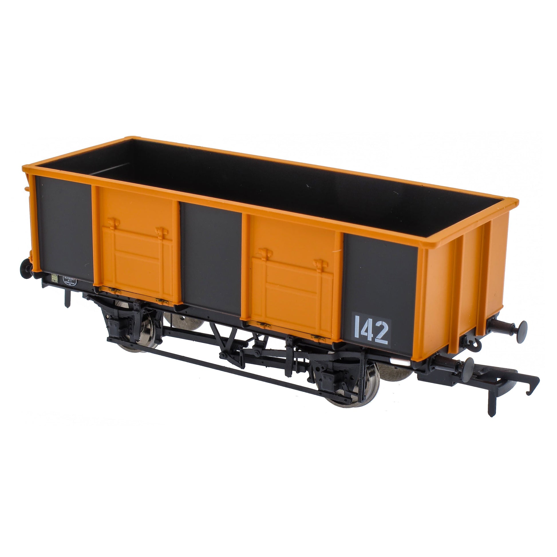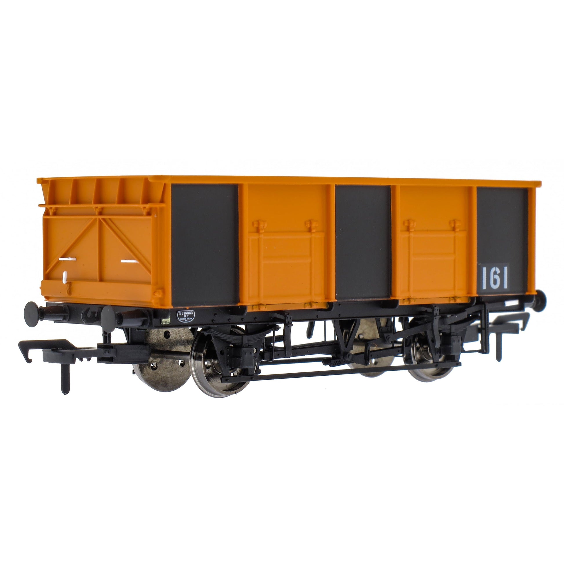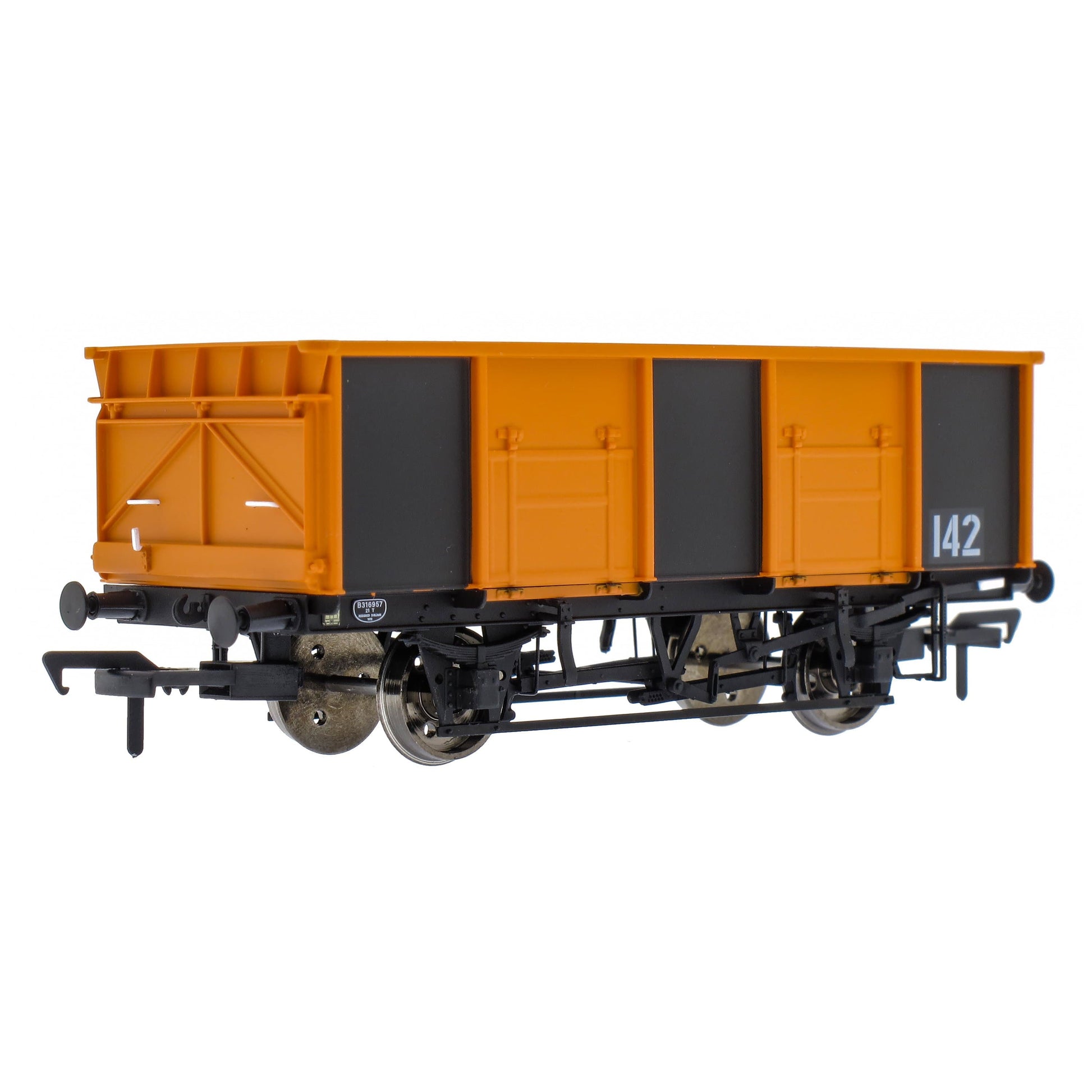 Introduced in 1950, almost 14,000 of these mineral wagons were built for British Rail. Two basic designs were used, both having twin side doors and one end door in their 21ft 6in long bodies, mounted on 12ft wheelbase under-frames. The 21 ton wagons were closer to their 16 ton predecessors in height, and lasted longest both in production and in service. Many saw extended lives in industrial service.