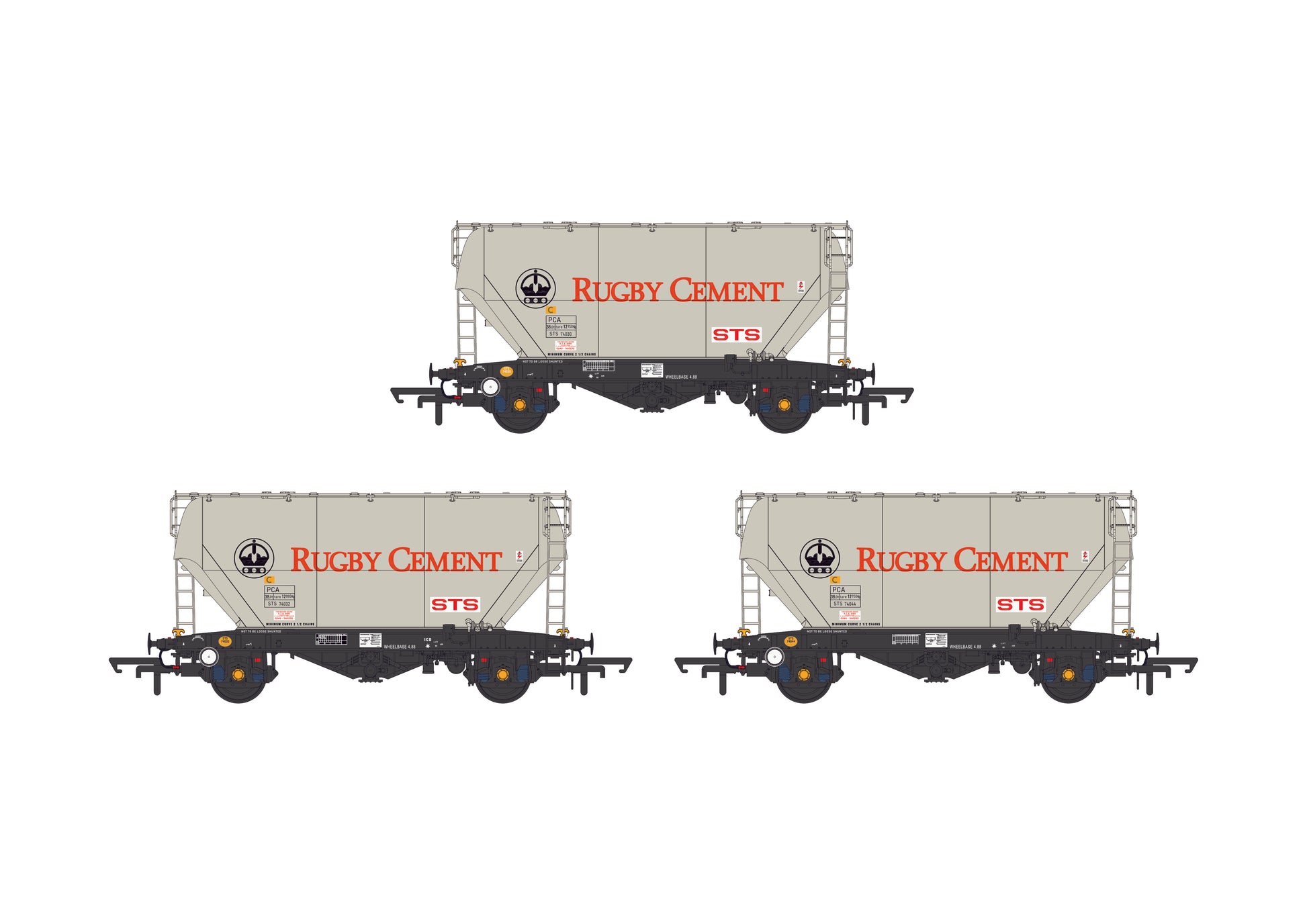 Built by CFMF of France for wagon leasing company STS (later VTG), the 50 PCA bulk cement wagons of the PC017B design diagram began entering service in 1982. A further batch of 15 wagons was manufactured in 1985 by another French firm, Fauvet-Girel, and assigned the PC017C design code. Companies such as Blue Circle and Rugby Cement have leased these vehicles during their time in traffic.